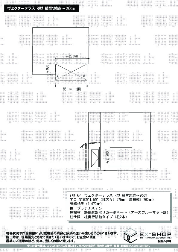 | サイズ | 屋根幅 2,760mm 出幅 1,470mm |