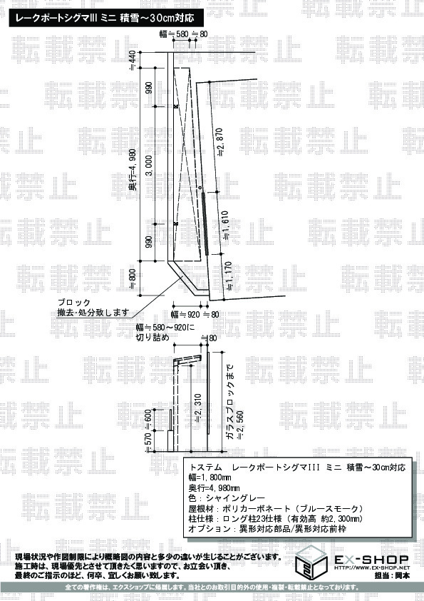 | 屋根材等 | ポリカーボネート(ブルースモーク) |