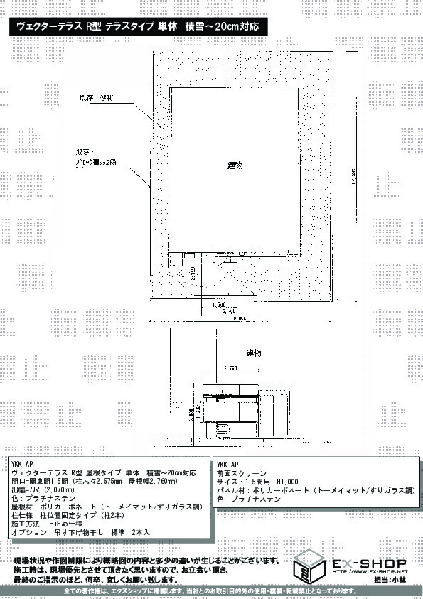 サイズ | 屋根幅 2,760mm 出幅 2,070mm |