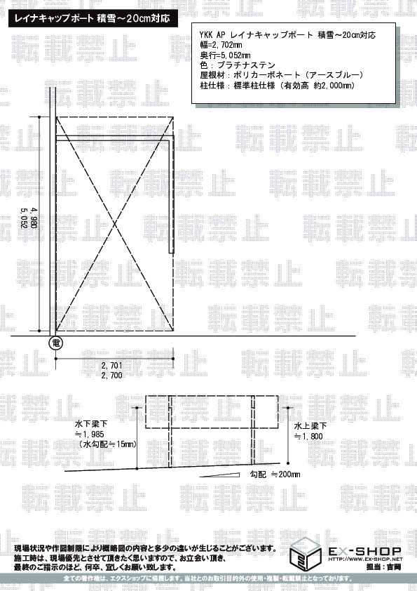 屋根高等 | 標準柱仕様(有効高 約2,000mm) |