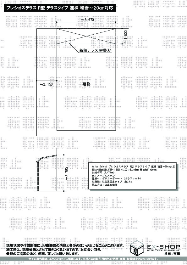 サイズ | 屋根幅 5,490mm 出幅 1,470mm |