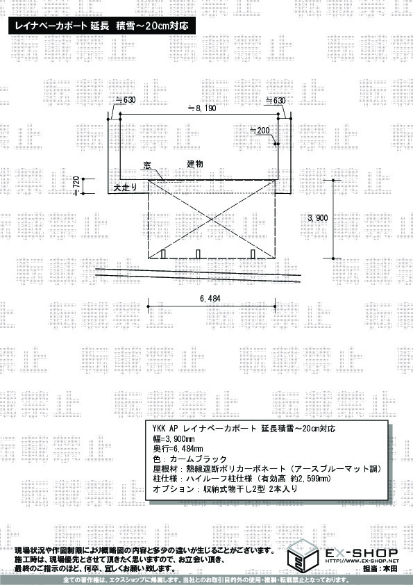 再度、エクスショップをご利用頂き誠に有難うございます。施工士の協力の元、ご満足頂けるお仕上がりとなりましたこと、大変嬉しく存じます。広々とした屋根に堂々とした存在感がとても素敵でございますね。ご自宅ともマッチし、とても素敵でございます。今後も、お客様に快適にご利用頂ける様、日々精進して参りますのでまた機会がございましたら是非エクスショップをご利用下さいます様、宜しくお願い致します。