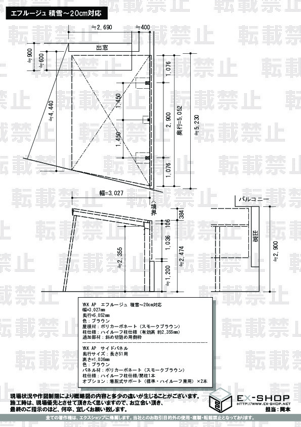 屋根材等 | ポリカーボネート(スモークブラウン) |