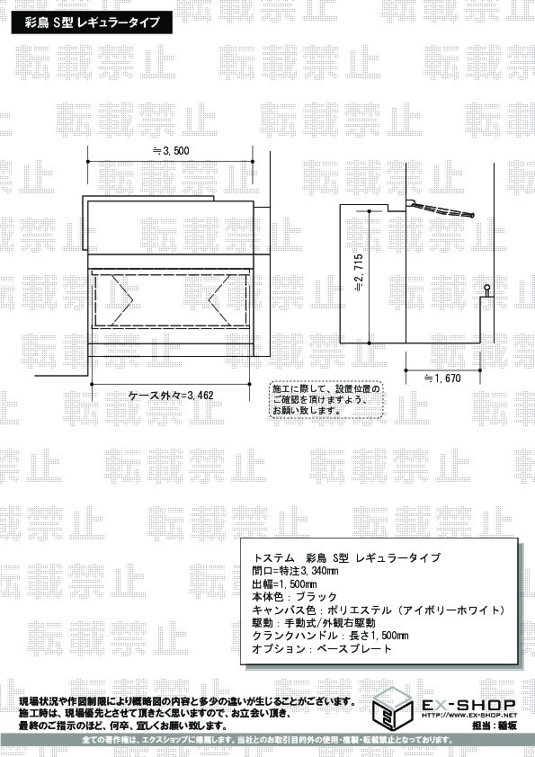 サイズ | 間口 3,340mm 出幅 1,500mm |