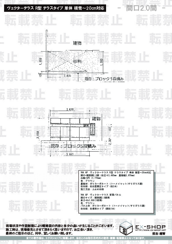 サイズ | 屋根幅 3,670mm 出幅 1,770mm |