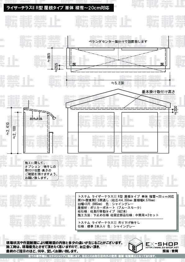 | サイズ | 屋根幅 4,570mm 出幅 885mm |