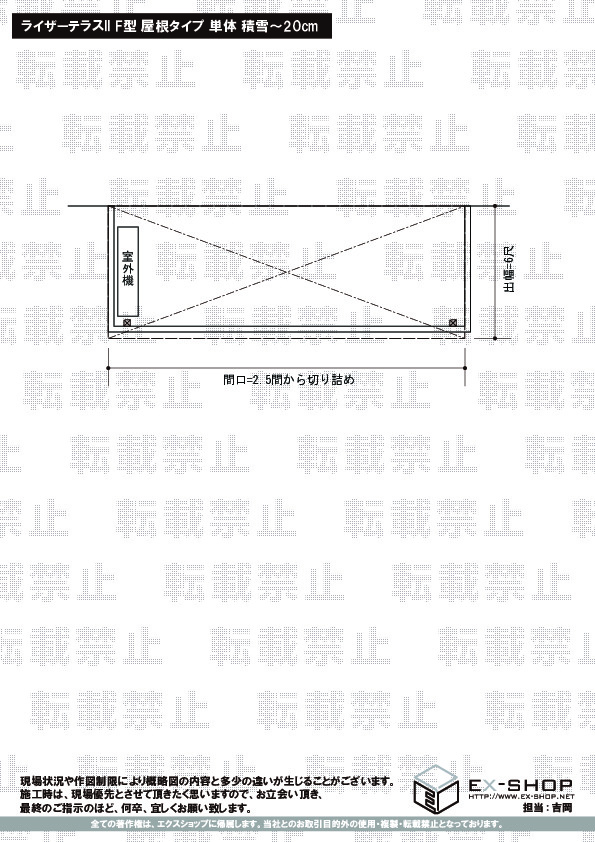 | サイズ | 屋根幅 4,570mm 出幅 1,785mm |