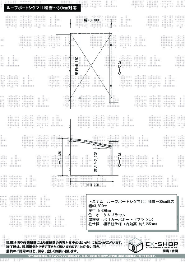 屋根高等 | 標準柱仕様(有効高 約2,232mm) |