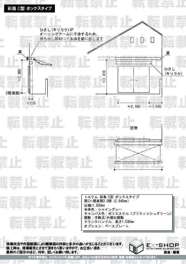 | サイズ | 間口 3,640mm 出幅 1,500mm |
