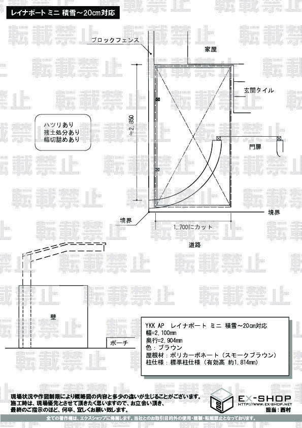 | 屋根材等 | ポリカーボネート(スモークブラウン) |