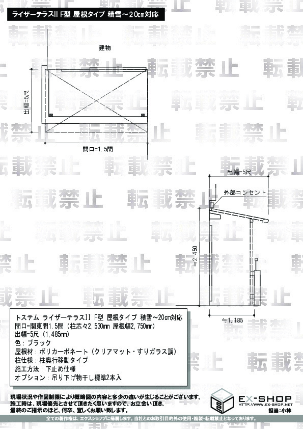 | サイズ | 屋根幅 2,750mm 出幅 1,485mm |