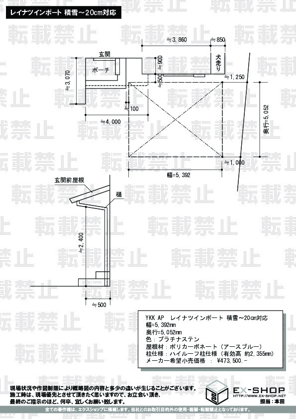 外構を調べていてYouTubeを良く見ていましたがお勧めがエクスショップだったので3台用で見積りを取ってみて希望に近かったので決めましたが、実際に決定した見積りは設置業者さんお勧めの組合せが良かったので変更して決定しました。設置してから霜が降りる寒い日や雨の日の乗り降りが大変楽になり設置して良かったです。
