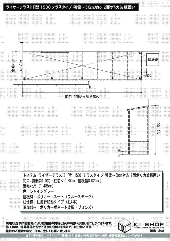 | サイズ | 屋根幅 8,020mm 出幅 1,485mm |