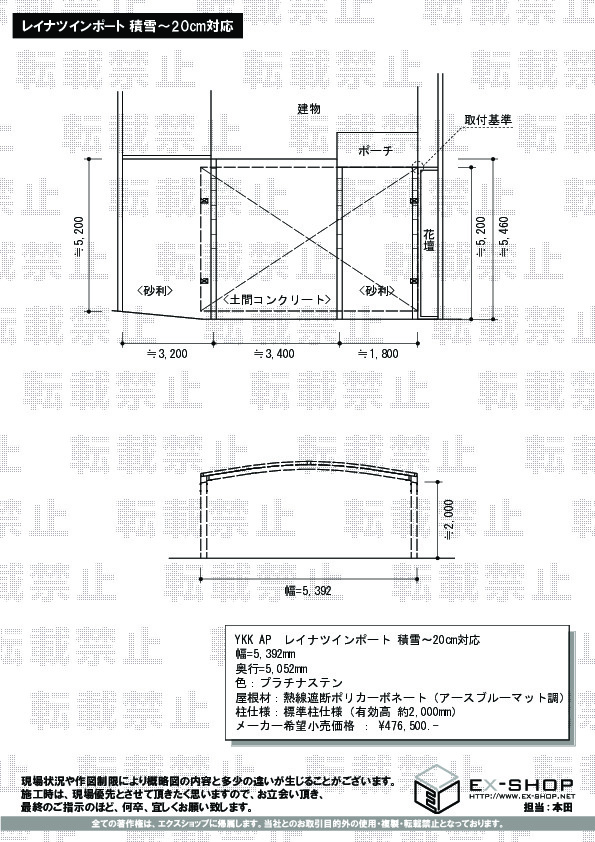 屋根高等 | 標準柱仕様(有効高:2000mm) |