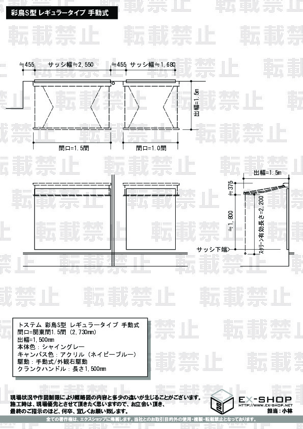 サイズ | 間口 2,730mm 出幅 1,500mm |