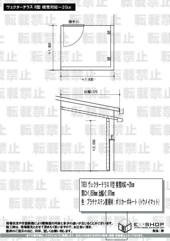 サイズ | 間口 1,850mm 出幅 2,070mm |