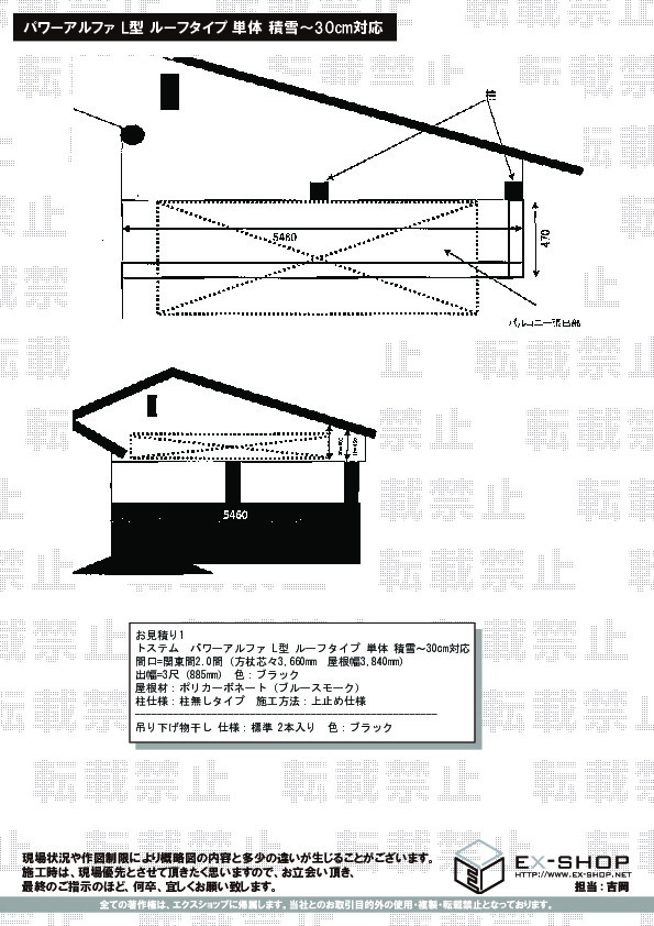 | サイズ | 屋根幅 5,360mm 出幅 885mm |