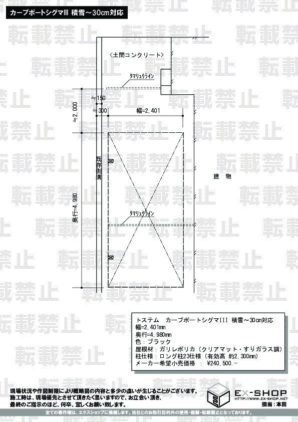 サイズ | 幅 2,401mm 奥行 4,980mm |