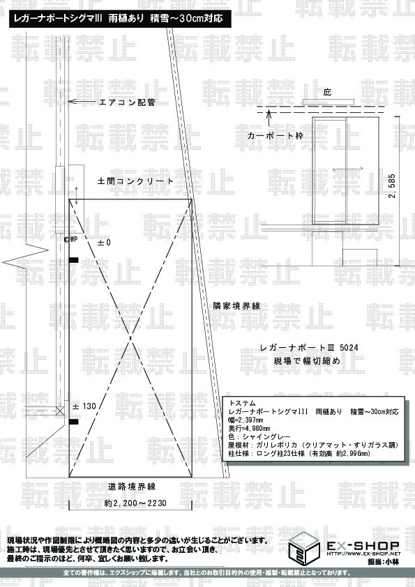 | 屋根高等 | ロング柱23仕様(有効高 約2,996mm) |