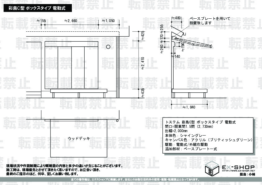 | サイズ | 間口 2,730mm 出幅 2,000mm |