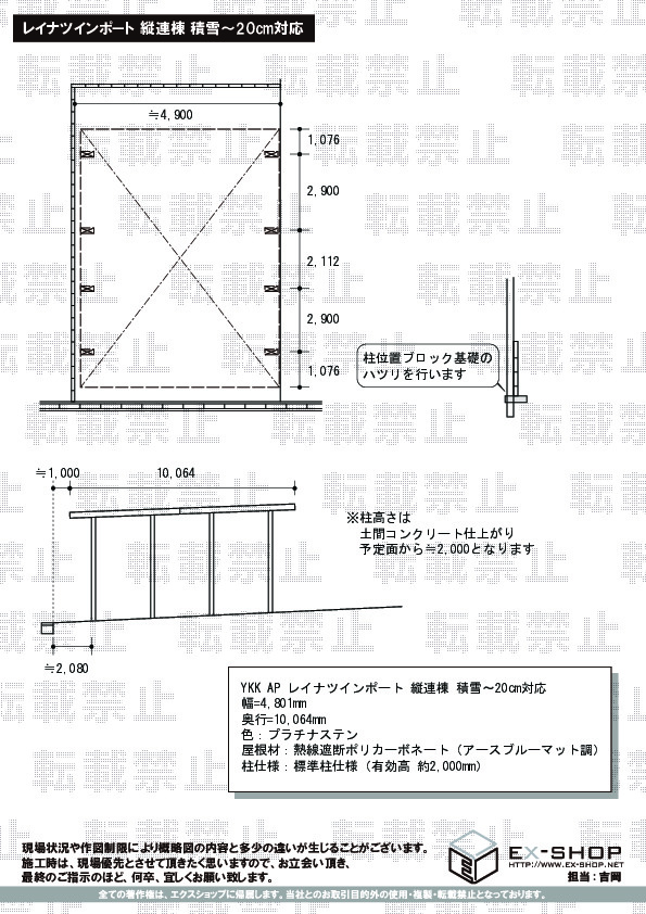 屋根高等 | 標準柱仕様(有効高 約2,000mm) |