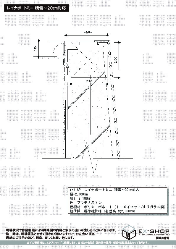 | 屋根高等 | 標準柱仕様(有効高 約2,000mm) |