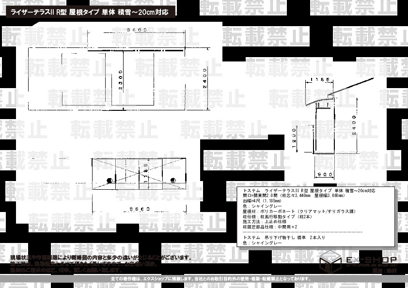 | サイズ | 屋根幅 3,660mm 出幅 1,185mm |