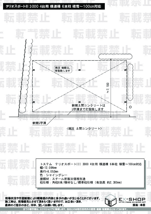| 屋根高等 | 角柱6本/横材なし/標準柱仕様(有効高 約2,300mm) |