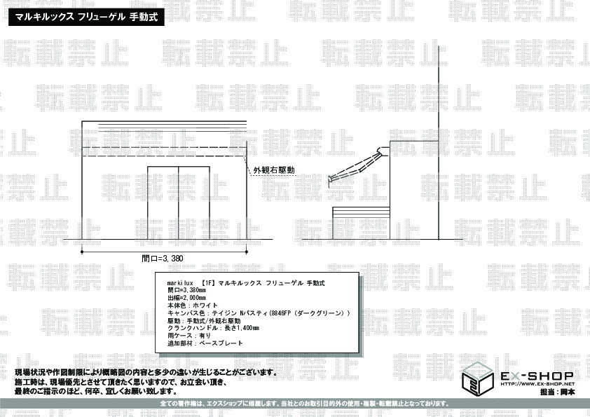 | サイズ | 間口 3,380mm 出幅 2,000mm |