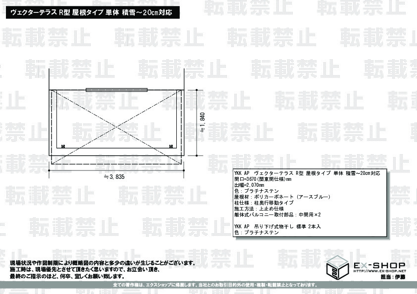 | サイズ | 間口 3,670mm 出幅 2,070mm |