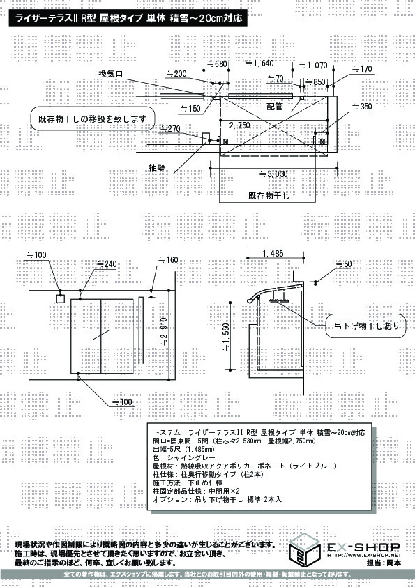 サイズ | 屋根幅 2,750mm 出幅 1,485mm |
