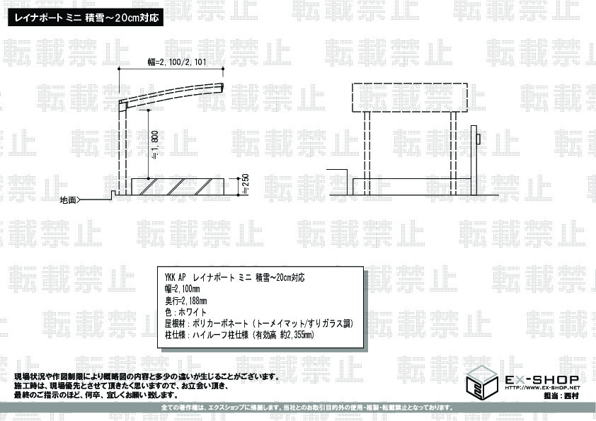 屋根高等 | ハイルーフ柱仕様(有効高 約2,355mm) |