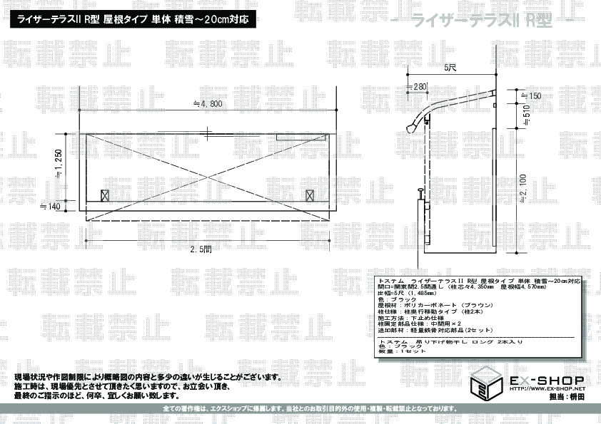 サイズ | 屋根幅 5,020mm 出幅 1,485mm |