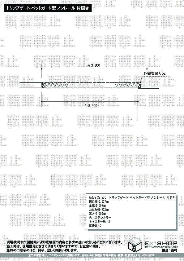 トリップゲートⅡ P型 ペットガード付き ノンレール 片開き