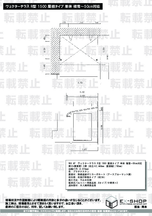 | サイズ | 屋根幅 2,760mm 出幅 2,070mm |