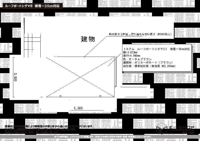 | 屋根高等 | 標準柱仕様(有効高 約2,200mm) |