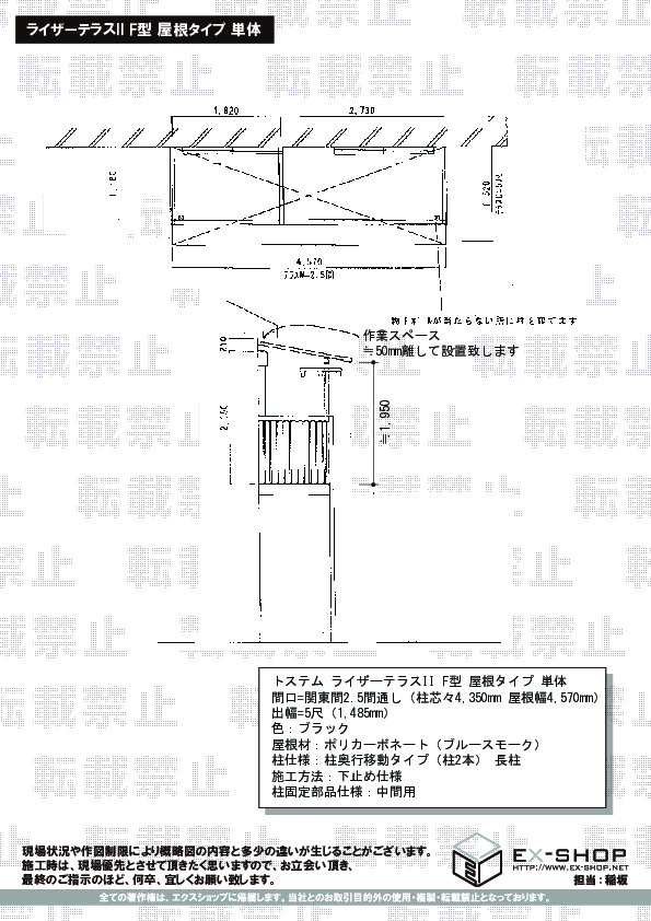 | サイズ | 屋根幅 4,570mm 出幅 1,485mm |