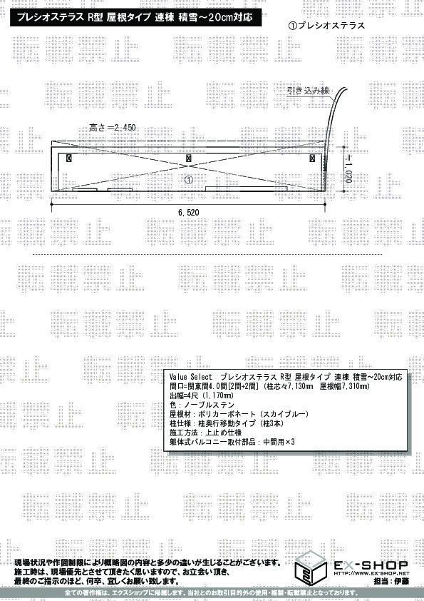 | サイズ | 屋根幅 7,310mm 出幅 1,170mm |