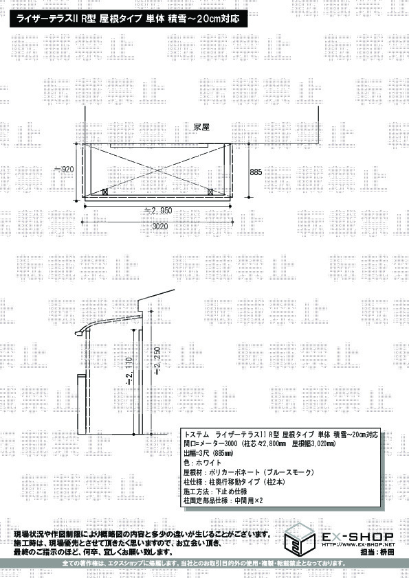 サイズ | 屋根幅 3,020mm 出幅 885mm |