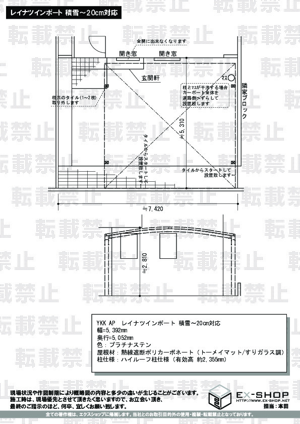 外構を調べていてYouTubeを良く見ていましたがお勧めがエクスショップだったので3台用で見積りを取ってみて希望に近かったので決めましたが、実際に決定した見積りは設置業者さんお勧めの組合せが良かったので変更して決定しました。設置してから霜が降りる寒い日や雨の日の乗り降りが大変楽になり設置して良かったです。