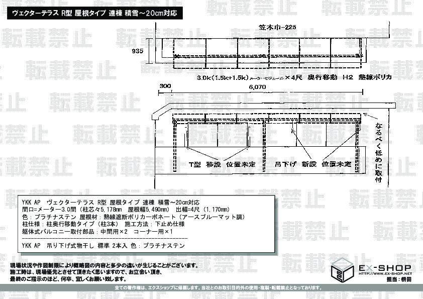 | サイズ | 屋根幅 6,030mm 出幅 1,170mm |