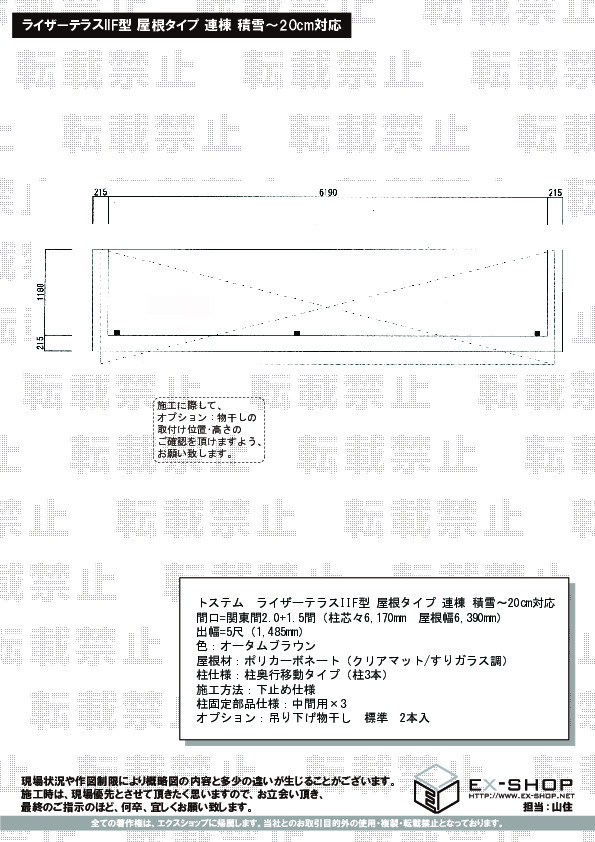| サイズ | 屋根幅 6,390mm 出幅 1,485mm |