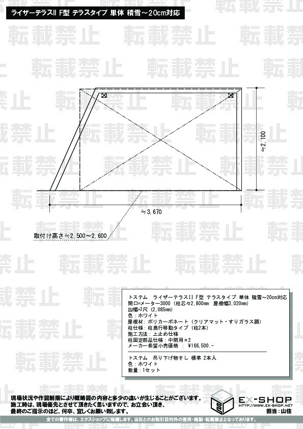 | サイズ | 屋根幅 3,020mm 出幅 2,085mm |
