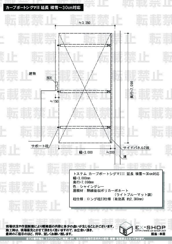 サイズ | 幅 3,000mm 奥行 7,098mm |