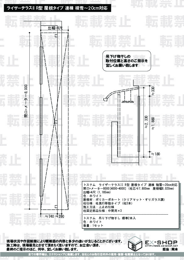 | サイズ | 屋根幅 8,020mm 出幅 1,185mm |