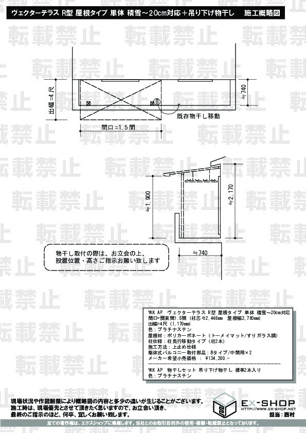 | サイズ | 間口 2,760mm 出幅 4尺(1,170)mm |