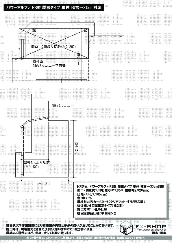 サイズ | 屋根幅 2,320mm 出幅 1,185mm |