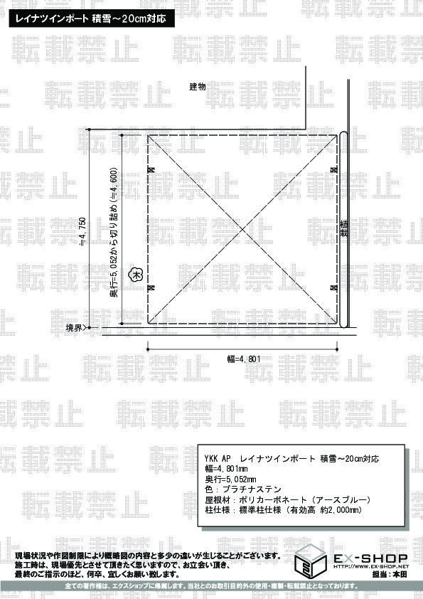 弊社スタッフや、提携施工店の担当者にお褒めのお言葉をお寄せ頂きまして、誠に有り難うございます。ポリカーボネート(アースブルー)の屋根材が、4本の柱で支えられ、頼もしく、安心感のあるカーポートでございますね。イメージ通りのお仕上がりにご満足頂き、大変嬉しく存じます。これからも、お客様のご期待を裏切らないよう精進して参りますので、また機会がございましたら、是非エクスショップをご利用頂けますよう、宜しくお願い致します。