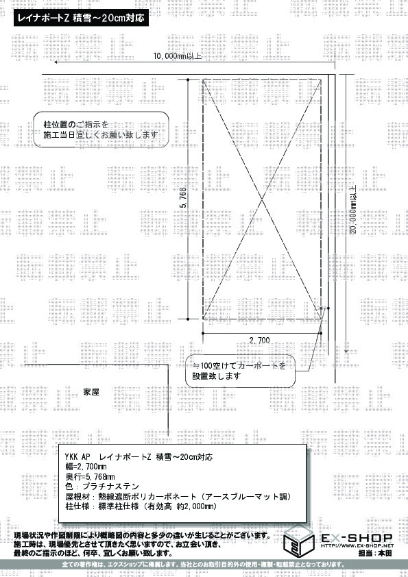| 屋根高等 | 標準柱仕様(有効高 約2,000mm) |