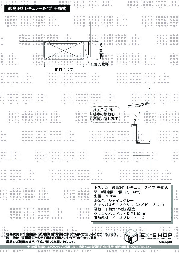 この度は、彩鳥S型 レギュラータイプ 手動式の施工をご依頼頂きまして、誠に有り難うございます。担当致しました施工士にとりましても、お客様のお喜びのお言葉が一番の励みになります。アフターサービスに関しましても、責任を持って対応致しますので、何かございましたら、お気軽に弊社までご連絡して頂けますよう、宜しくお願い致します。